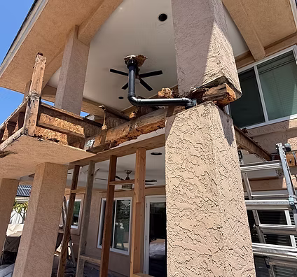 Our team rebuilt the entire balcony from the ground up, reinforcing the framing and support system to exceed modern structural standards. Once the new frame was installed, we applied fresh stucco to seamlessly match the existing exterior finish of the home.