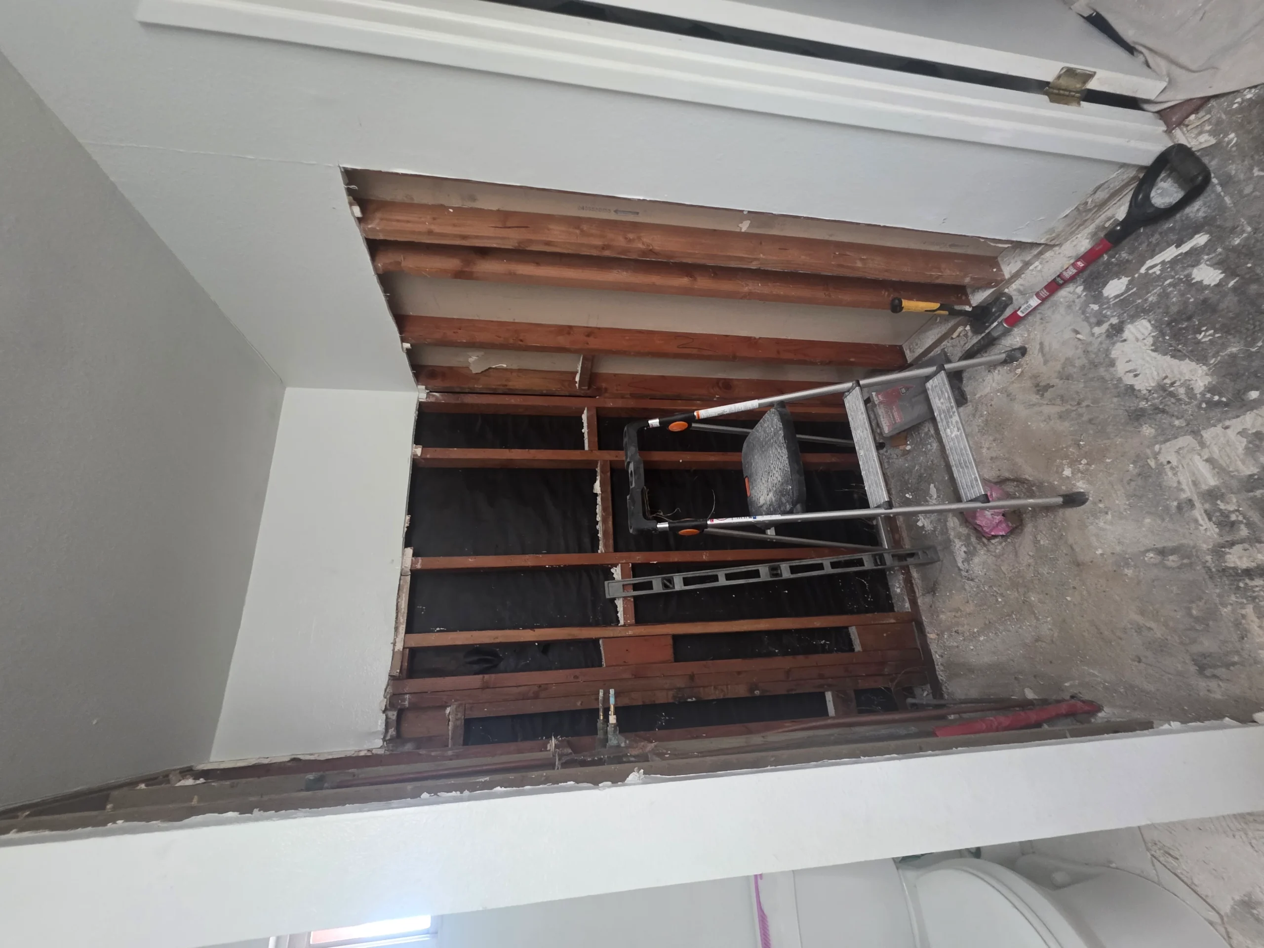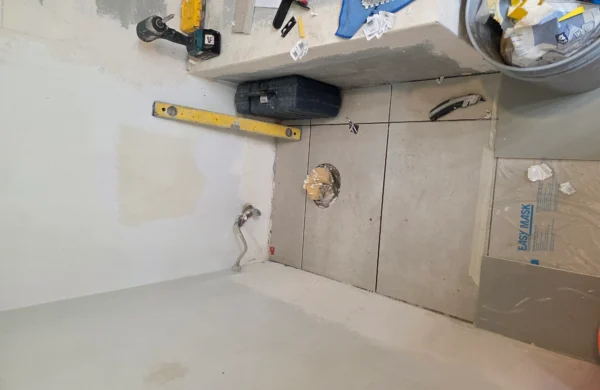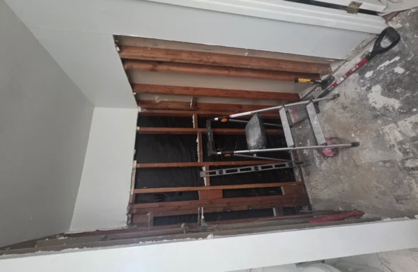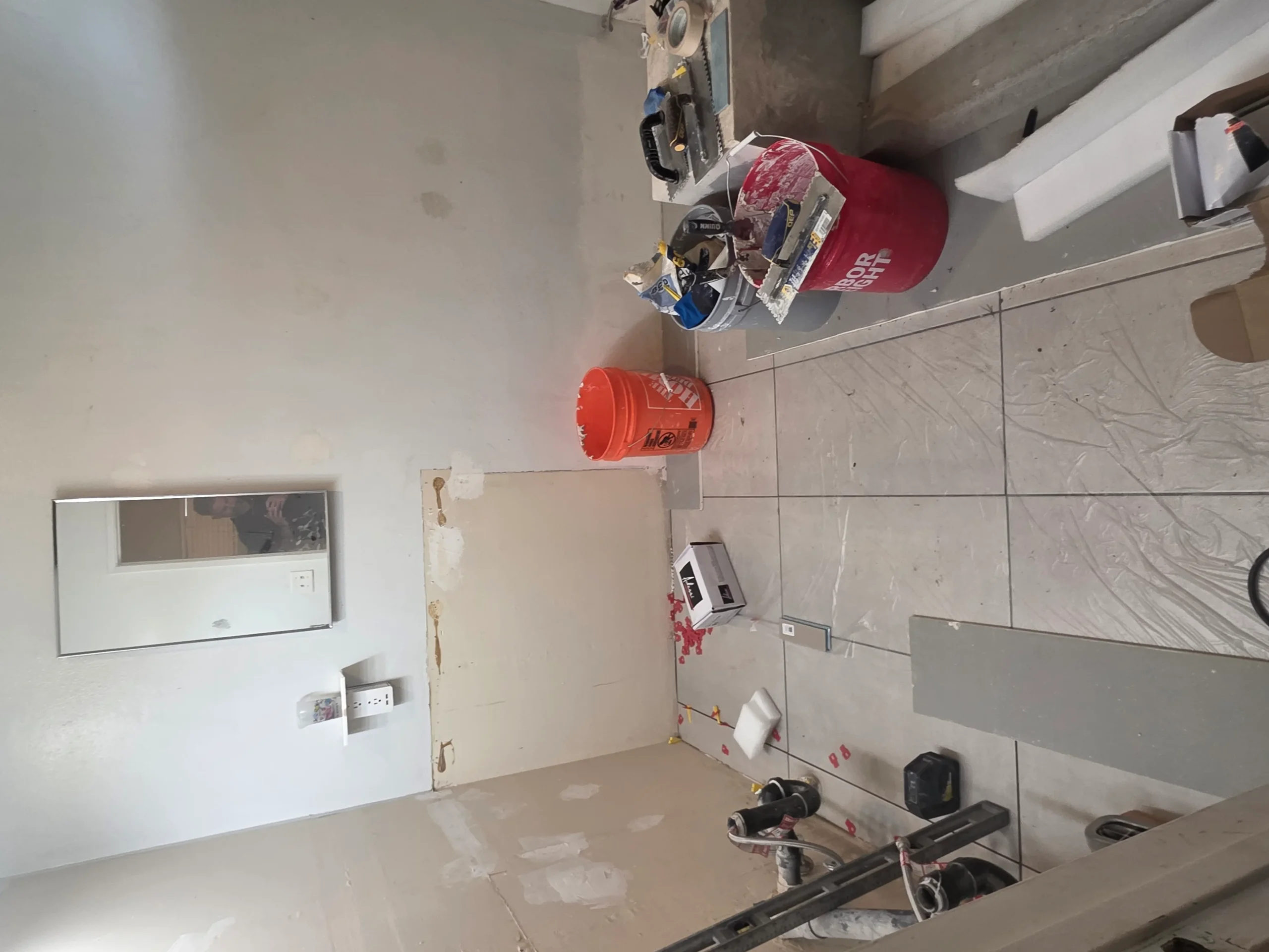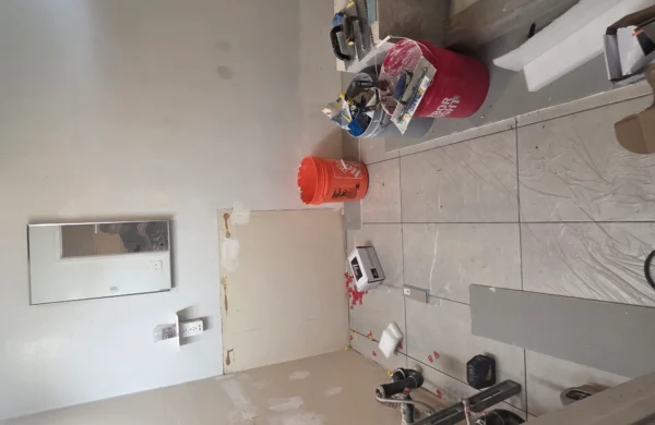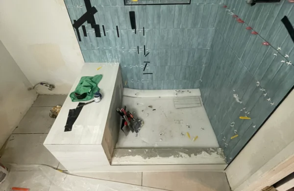 Bathroom remodels often require careful coordination between plumbing, electrical, and finishing work. In this project, the existing layout and older plumbing infrastructure required adjustments to accommodate modern fixtures and materials. The construction team worked carefully to ensure all systems were properly updated while maintaining an efficient layout for the space.