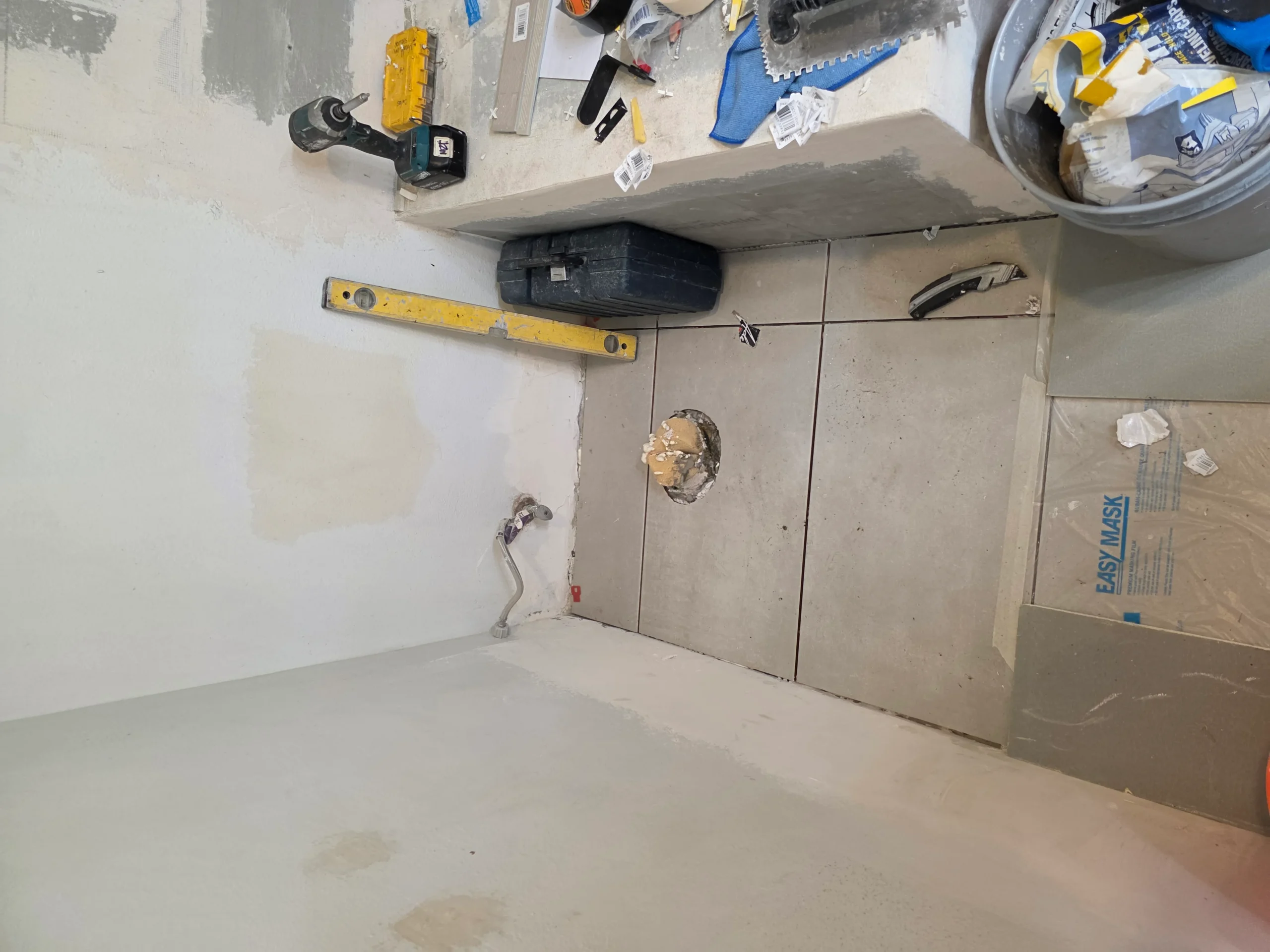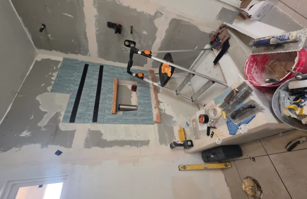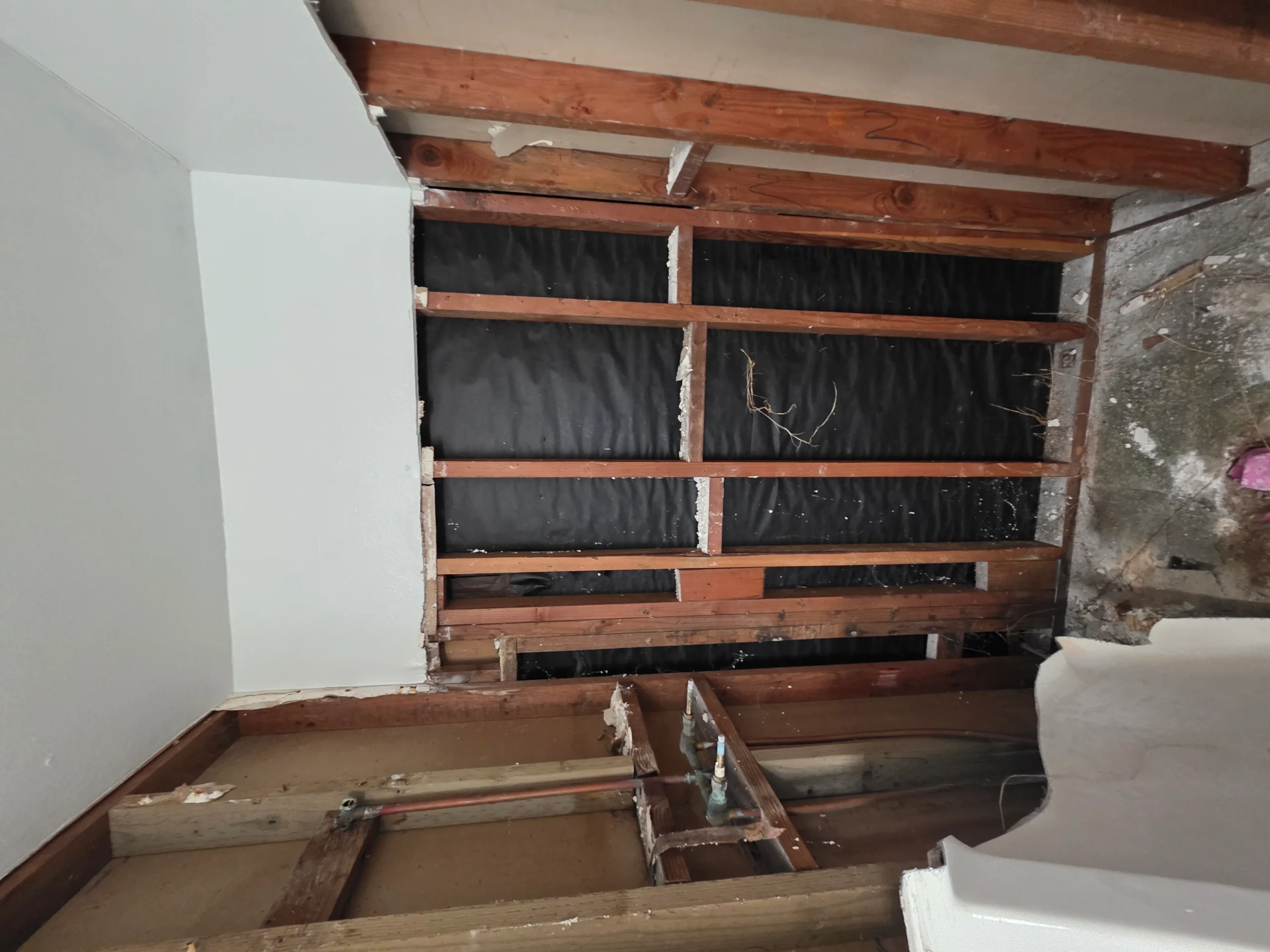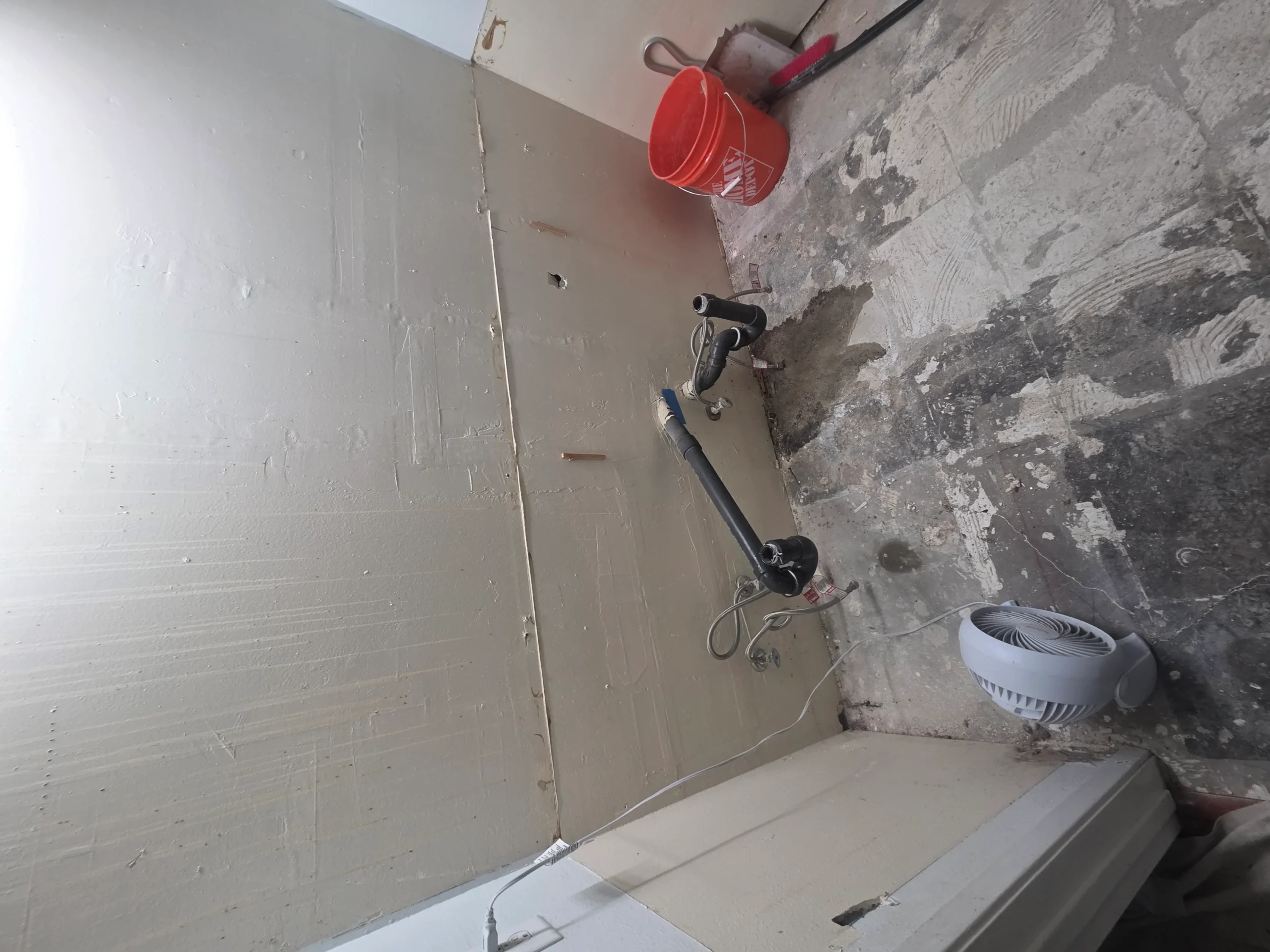 Bathroom remodels often require careful coordination between plumbing, electrical, and finishing work. In this project, the existing layout and older plumbing infrastructure required adjustments to accommodate modern fixtures and materials. The construction team worked carefully to ensure all systems were properly updated while maintaining an efficient layout for the space.